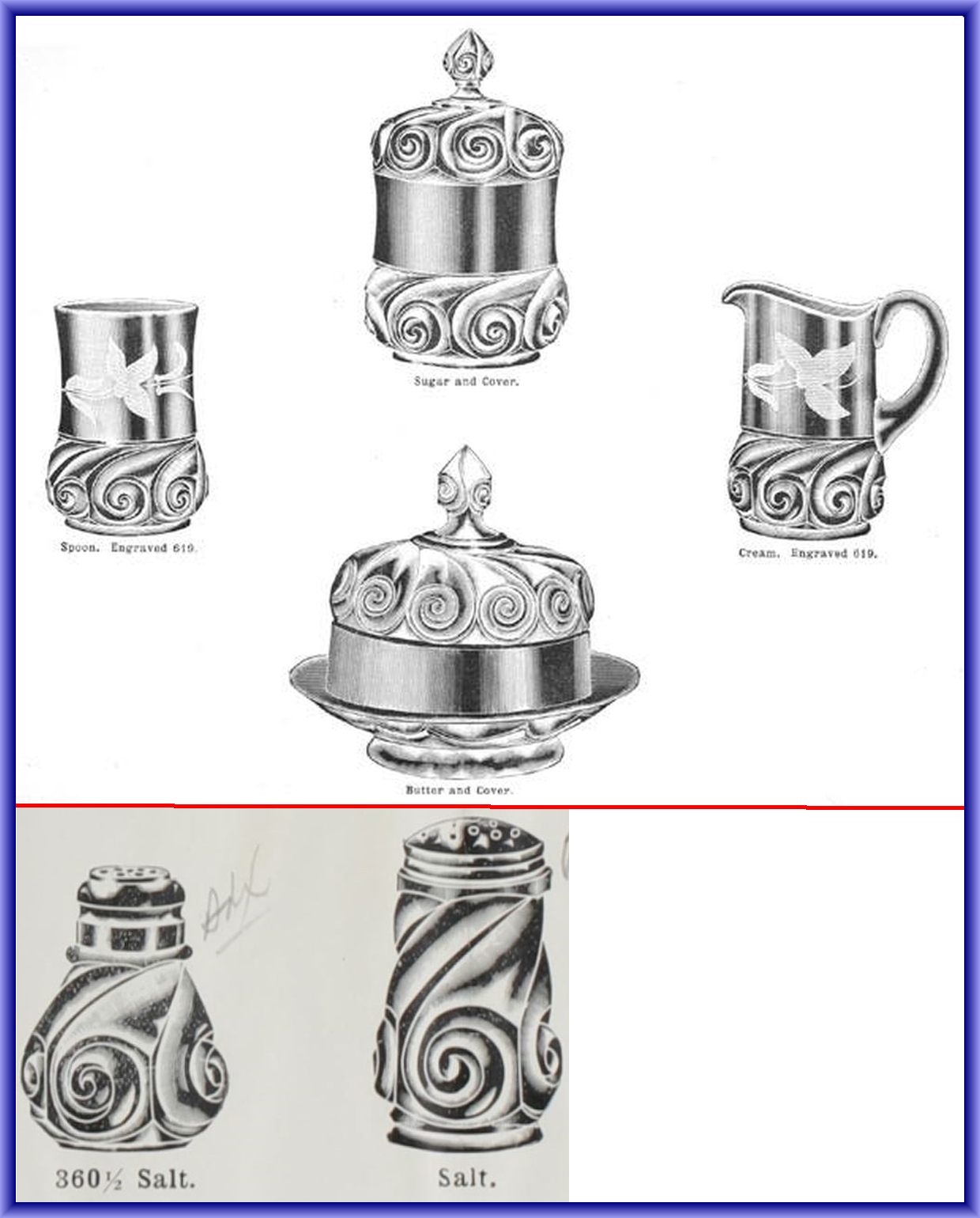 Contributor: Janna Smith Eversmeyer - two spooners. The one on the left 4.5H was tooled slightly different than the one on the right 4.75H.