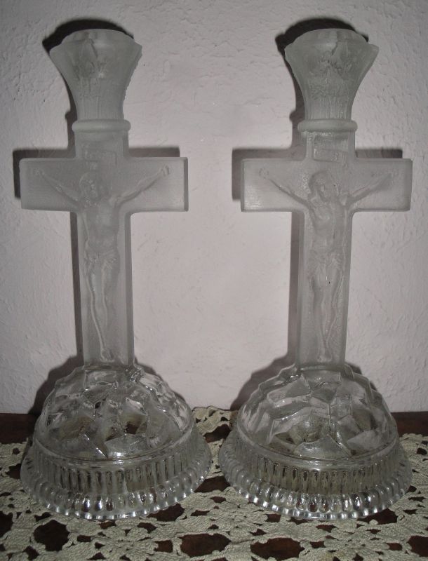 Contributor: Teresa Haas - 10.25H - unusual finish, with colorless crystal base & frosted crucifix