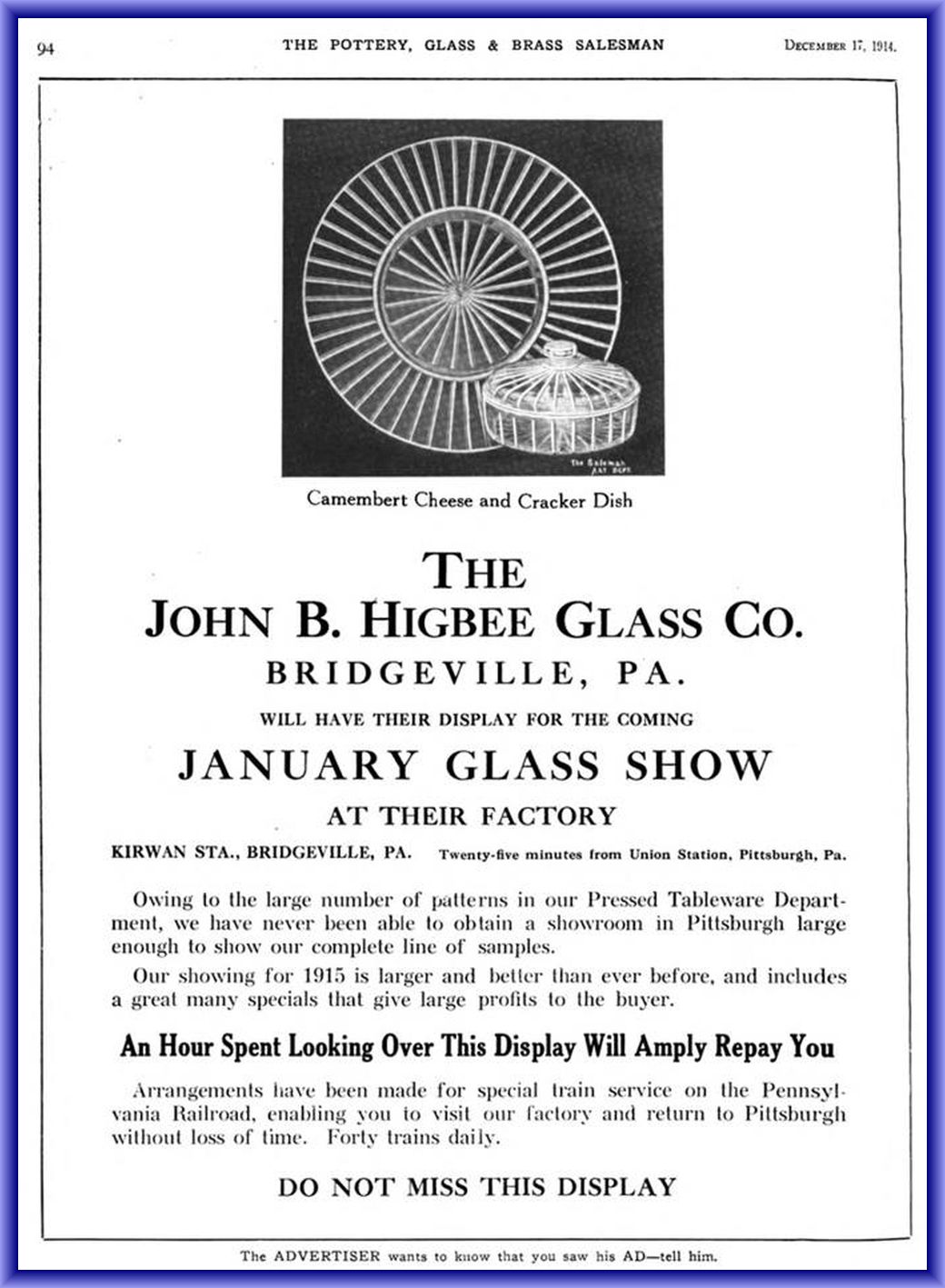 HELIO (OMN) by Higbee, John B. Glass Company/Bridgeville-PA (Company Operated: 1907-1918), 1915 Introduced