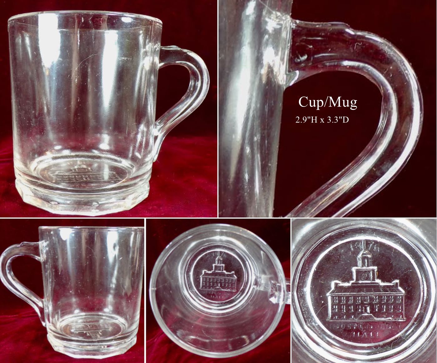 NOTE: "Dodecagon Bottom" suggests that the base has twelve sides and indeed that is the case of the Plain No. 2 Large mug. There is a version of the Plain No. 2 mug with Independence Hall in the base. Date of c1876 for mug based on it being souvenirs of the Centennial exposition.