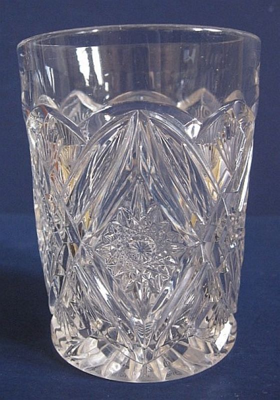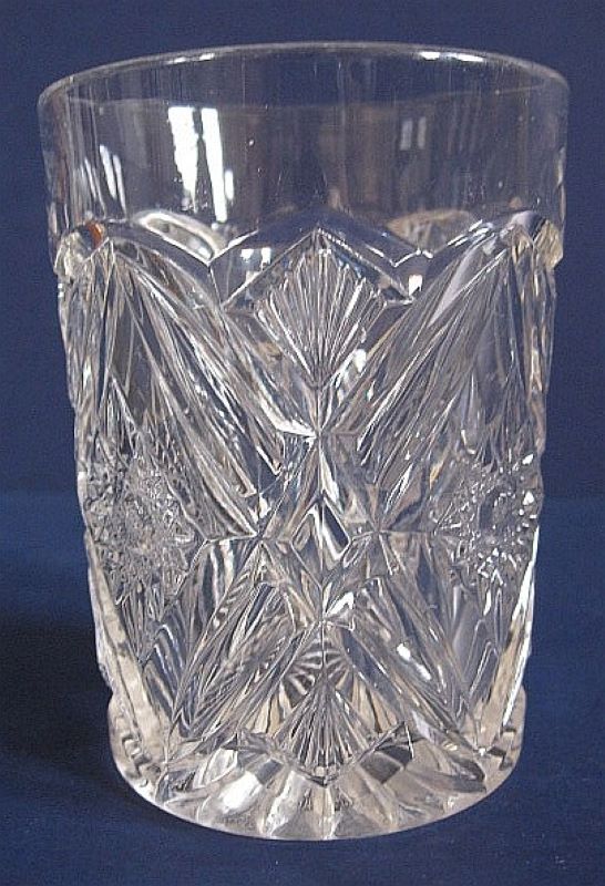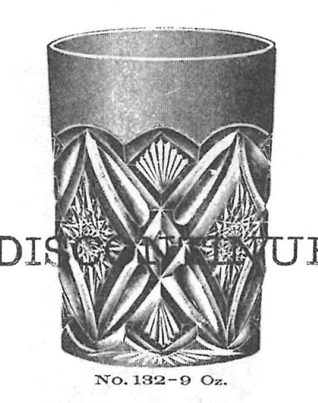 NOTE: Sid Eapg (Lethbridge) 2024: the cut is from a c1905 Heisey catalogue but these date to c1897. Similar to No. 132. [No. 130 and No. 132 were] shown together because while the motifs are very similar they differ in several ways including the direction of the fans above and below the large X.
