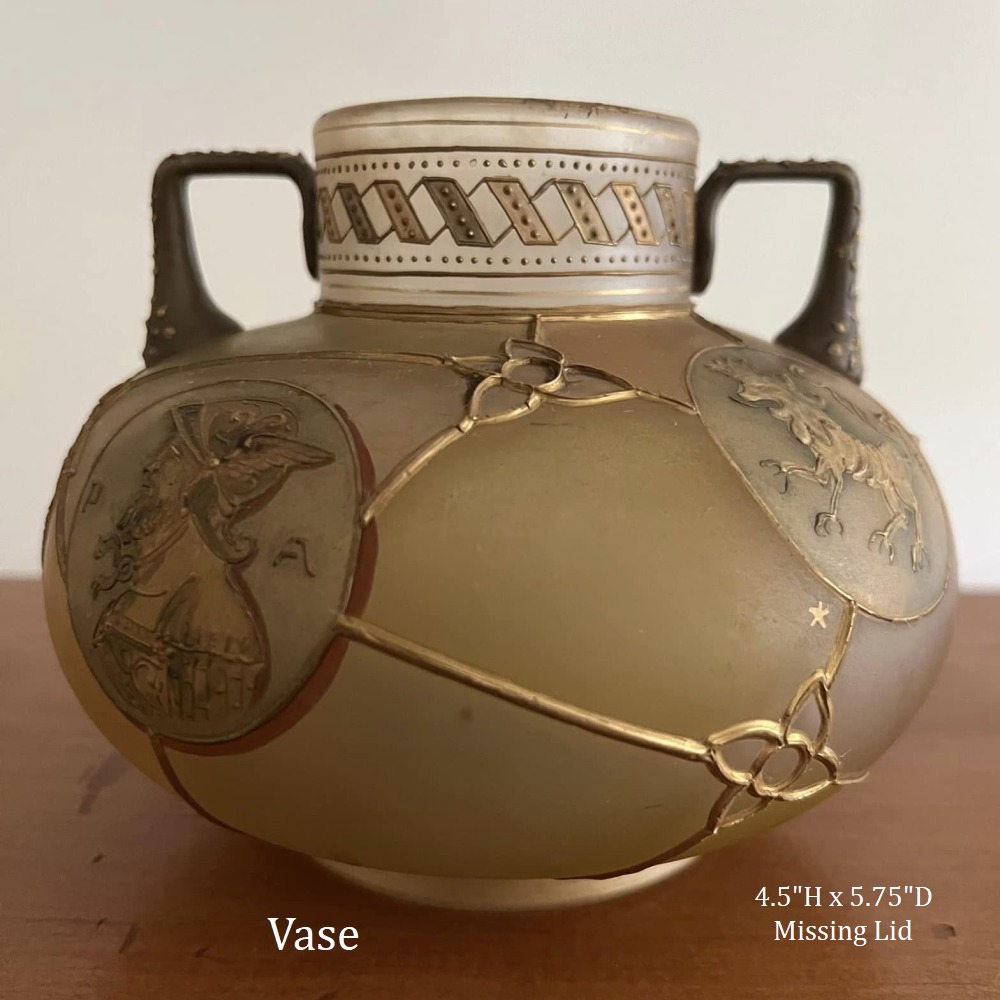 NOTE: David Zeidler - Royal Flemish was entirely hand decorated ware and is considered the top of the line glass for Mt. Washington. This line consists of various items and decorations mainly with medallions as the main component. Patented 1894