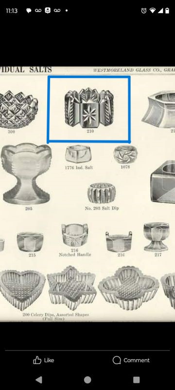 Contributor: Debi Raitz from Ruth Grizel "Definitive Pictorial Guide to Westmoreland's Salt and Pepper Shakers ... and Salt Dips."
