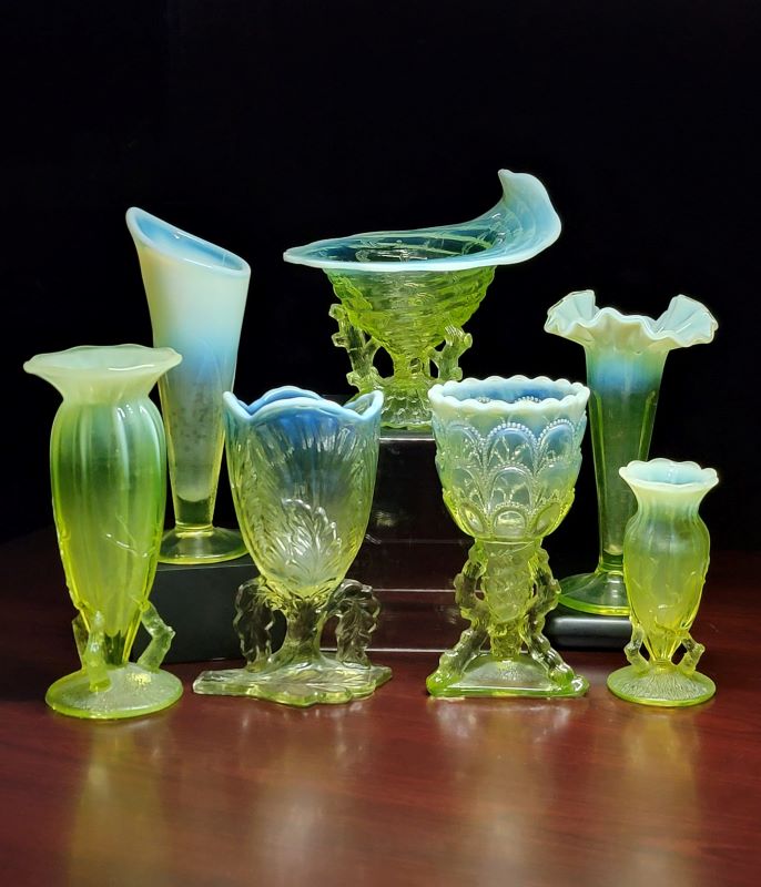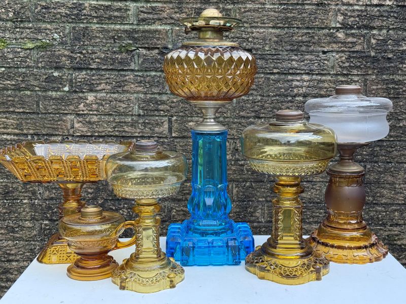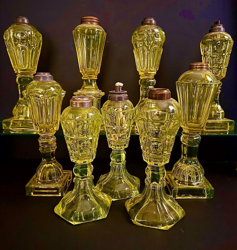 Contributor: Brad Hinkelman collection 19th C Boston and Sandwich and New England Glass Co canary oil lamps