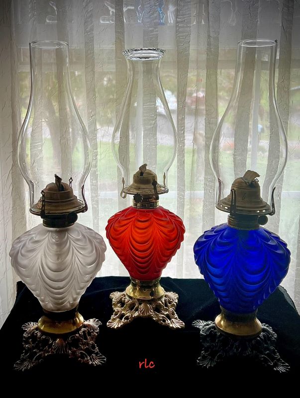 Contributor: Rich Cornwell Fostoria’s 3 colors of “Mary” oil lamp(Etched, Persian, Blue). From 1904 Catalog; also discussed in “Fostoria Glass Company Bk 1: The Opal Years 1897 to 1922” by Gary Schneider .