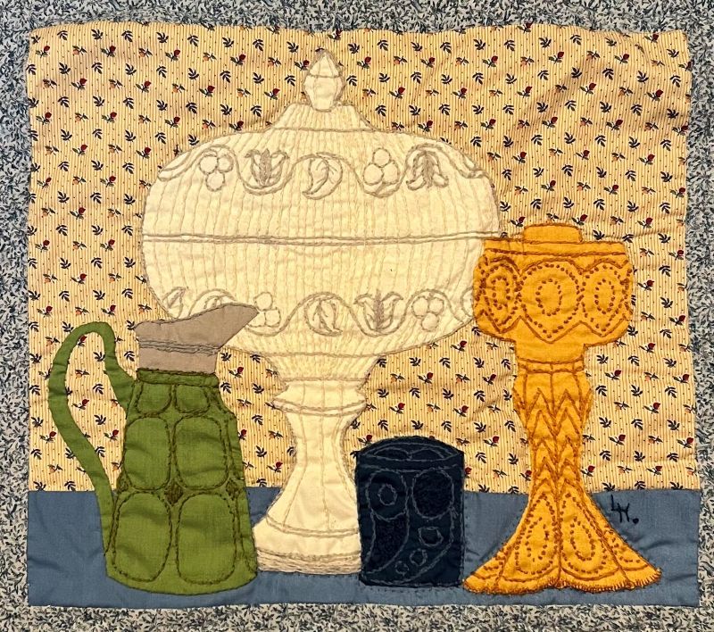 Contributor: Sean Cronin- made for his mother Judy Cronin by her chapter of Embroidery Guild, honoring her presidency. pictured items are from her collection
