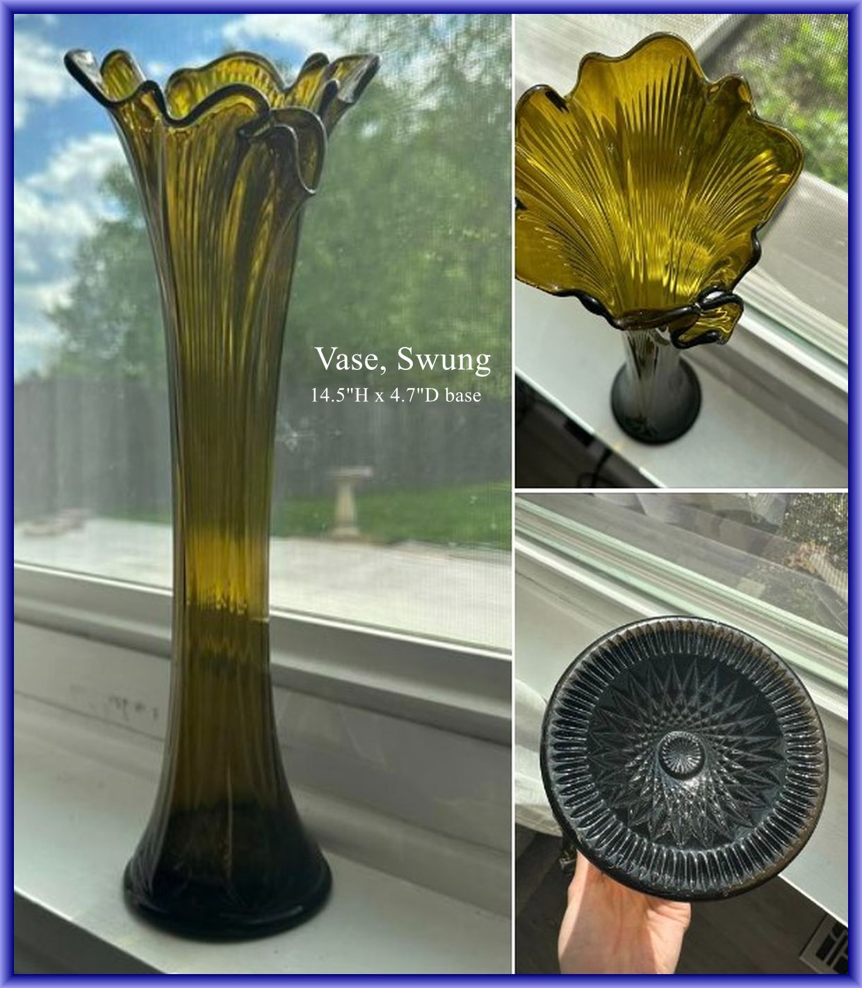 NOTE: As far as I know this vase disappeared from production around the late 1920's. The green color of this vase is similar to some of the green that they made in the 1910's, I have seen some Puritan pattern mugs in this color. West's book lists specifically a "Green" Swung Vase Color for 1904, Dark Green introduced 1916. There is also a green referred to as Reseda Green but no year listed. All from the West Period.