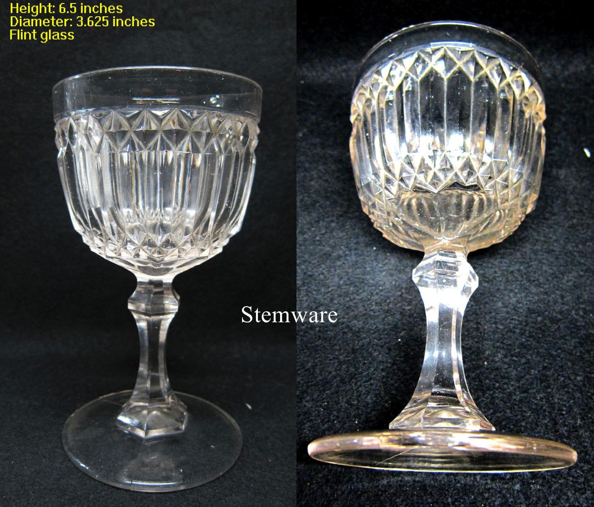 NOTE: Sid Lethbridge 2021: "The diameter...[of this] example is larger than the No. 67 goblet so perhaps it is a "large goblet" by Mt. Washington or another pattern or another maker." "...we should list it as a variant, maker uncertain but possibly Mt. Washington, c1860. It is so, so close to No. 67 that you have to think it is related."