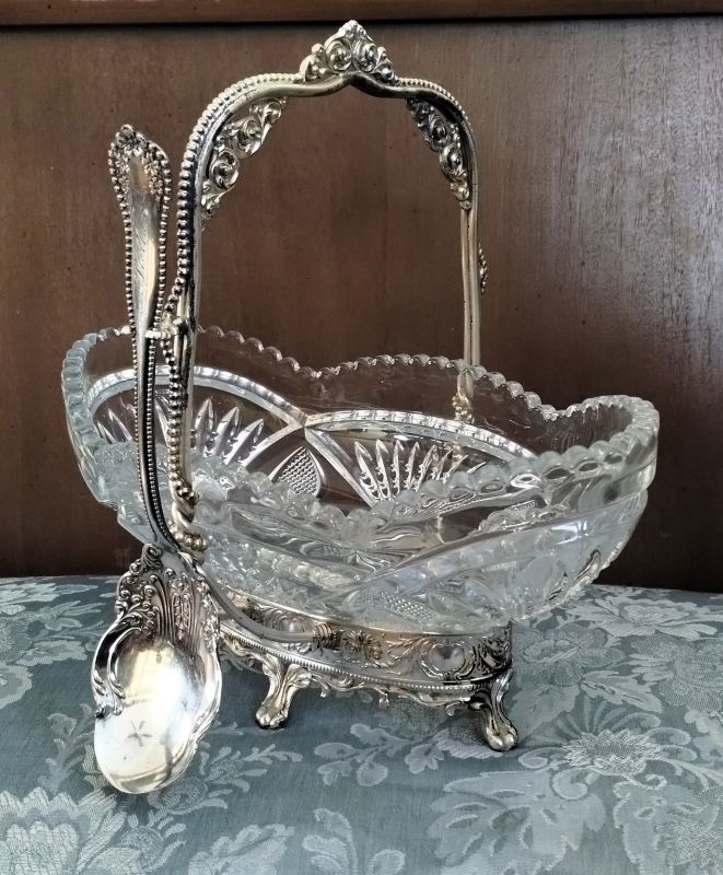 Contributor: Paul Kirk Jr 1-23-26 - actual bowl and 1847 Rogers silver frame. 10.5L x 5.75W. Base is 2.58W x 6L.