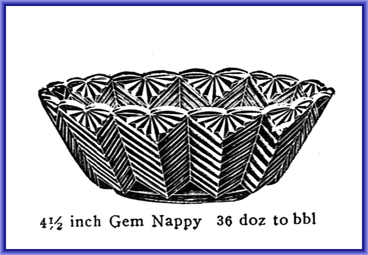 NOTE: Gem appears in the 1914 Federal Glass Co. catalogue. The only Gem item in the catalogue is this 4-1/2" nappy.