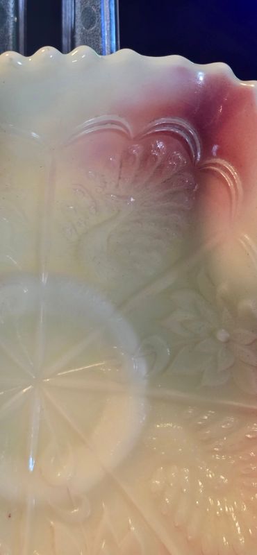 PEACOCK AND DAHLIA (AKA) by Fenton Art Glass Company/Williamstown-WV (Company Operated: 1905-2011), c1912 introduced