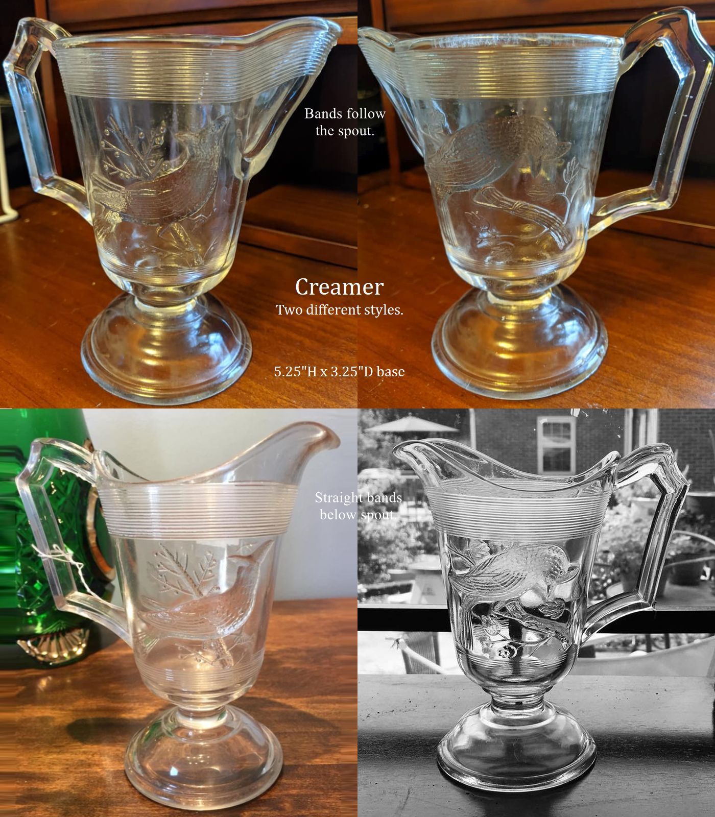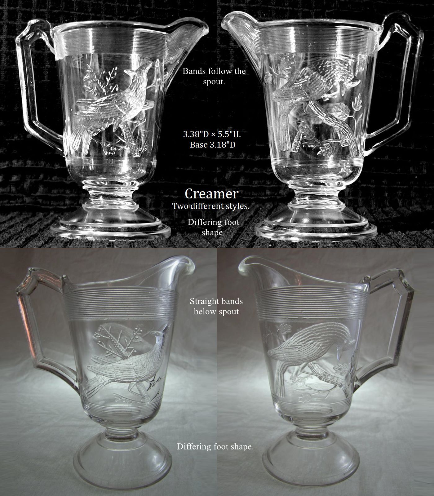 NOTE: Sid Lethbridge: 2020: According to [L.G.] Wright production records transcribed by Tom Bredehoft about 2000 goblets were produced and about 150 creamers. There are two styles of creamer... something I have observed but isn't mentioned by R&J (Identifying Pattern Glass Reproductions Jenks, Luna, Reilly). One might be the reproduction or they both could be original