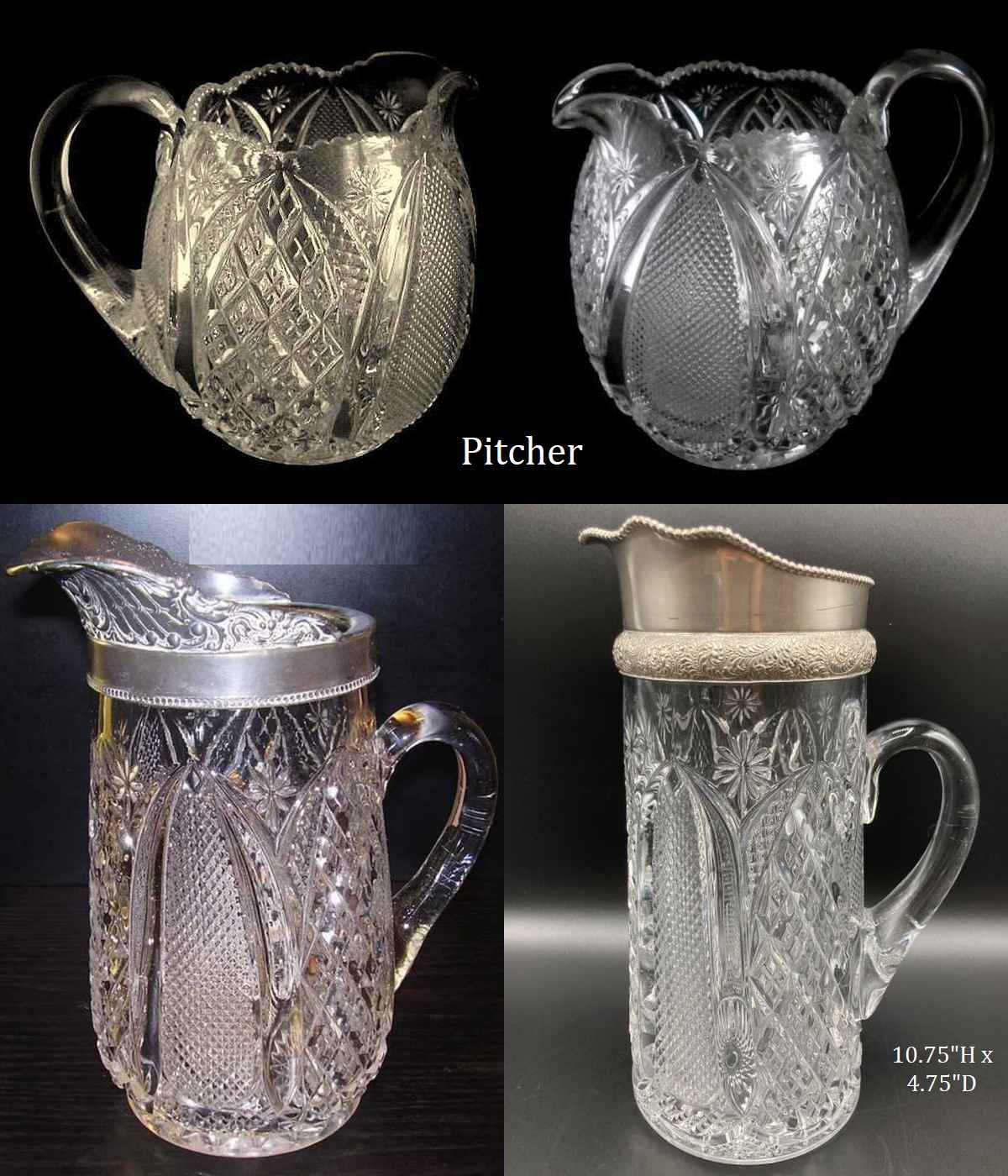 Contributor: Sid Lethbridge- a spoon holder, sugar and cream mounted with silver plate rims. All 3 pieces are created with the same glass form but are mounted with varying metal fittings