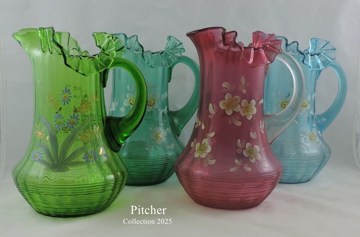 NOTE: Sid Lethbridge 2024 - Pitcher appears in 1898 Missouri Glass Co. wholesale catalogue. The illustrated set shows same decoration and is designated as No. 473. ...set was offered in green, ruby and blue. This particular catalogue used combination of OMNs and internal names/numbers. ... in some cases items were designated with the OMN ...e.g. No. 205 for Northwood No. 205 water set. So, for the pitcher in question, No. 473 may be the OMN... it would certainly fit into numbering system for Northwood for this time period - but we do not have a trade quote mentioning this number which would help to cement the possibility.