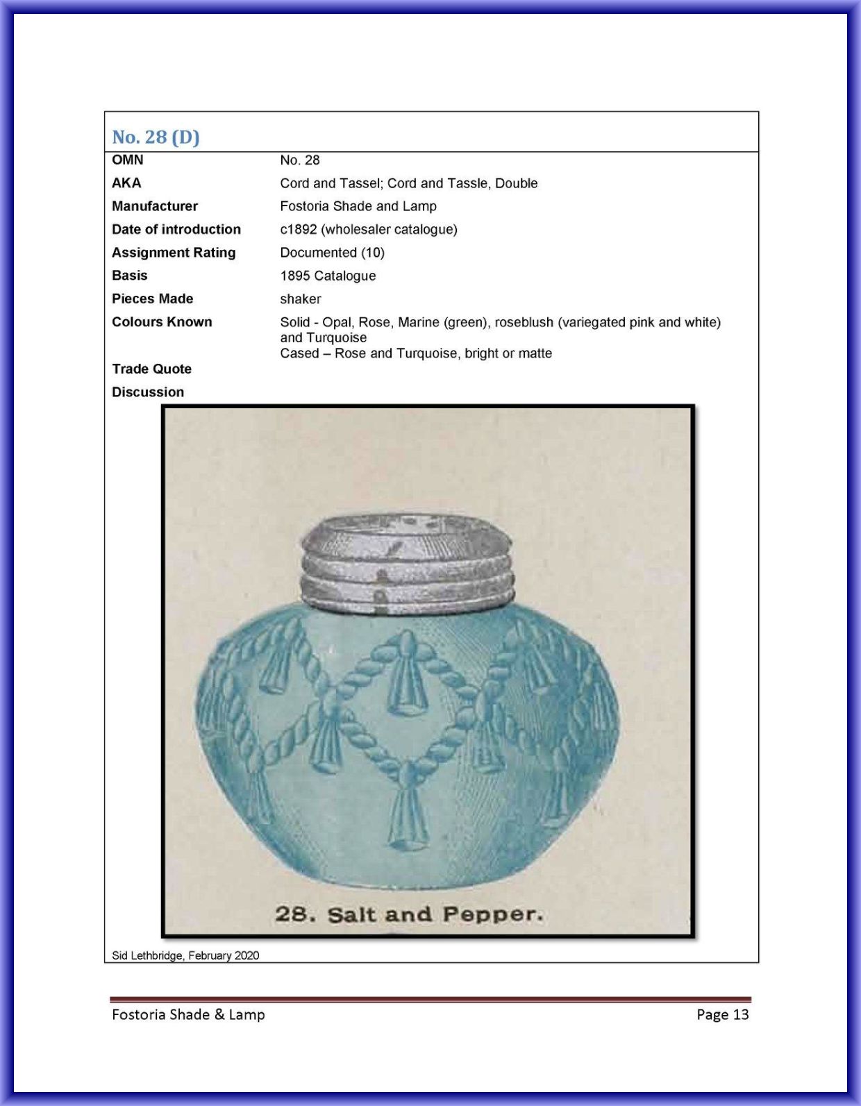 NOTE: Fostoria Shade & Lamp was acquired by Consolidated Lamp & Glass at the end of 1893. Production may have continued under Consolidated.