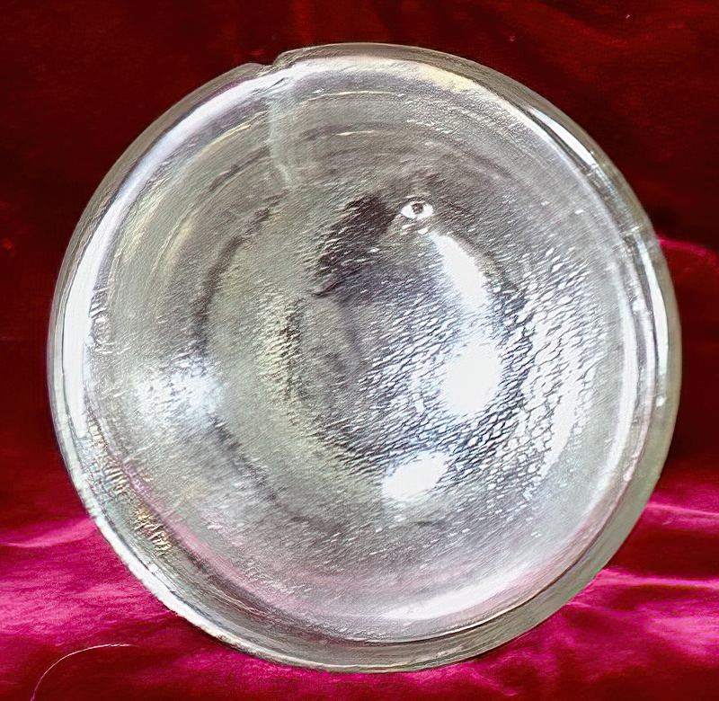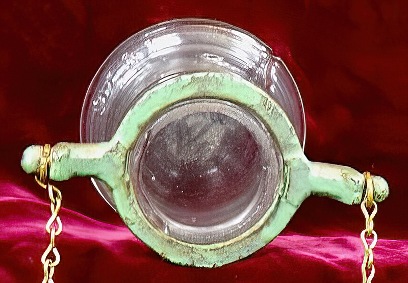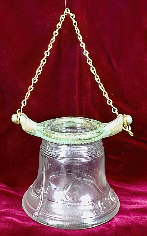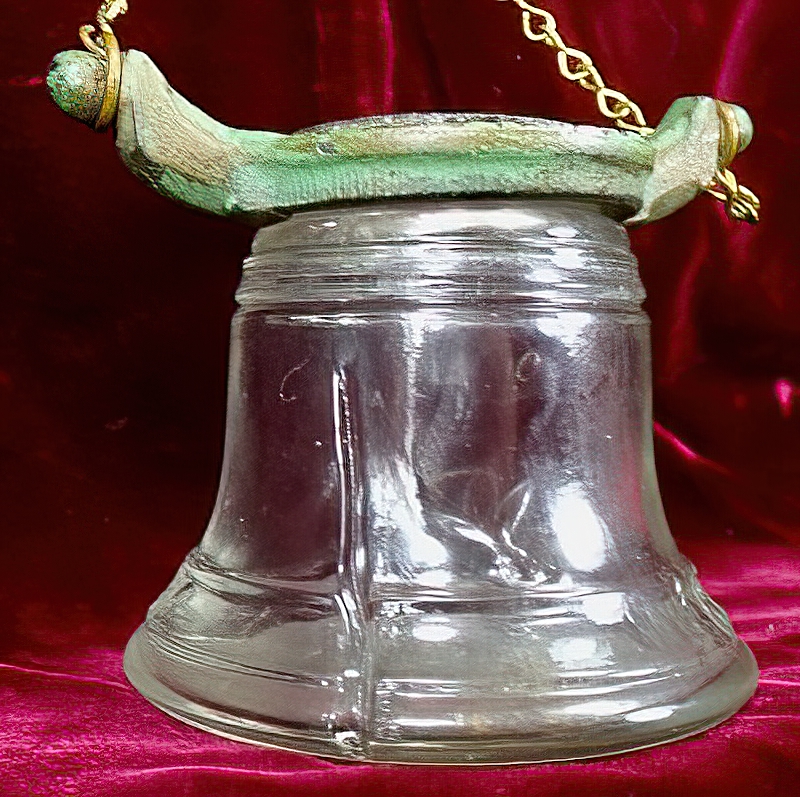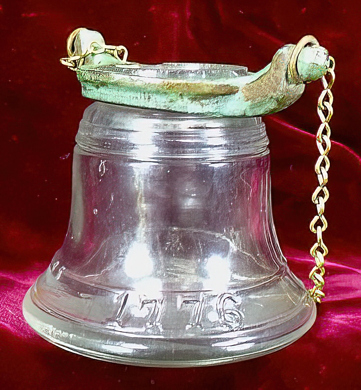 Contributor: Valerie Strunk possibly match holder.1776 and 1876 only on bell. Not marked. Base 2 5/8"D, brass piece 3 1/8"L x 1 3/4"W. Glass bell is 2 1/4"H