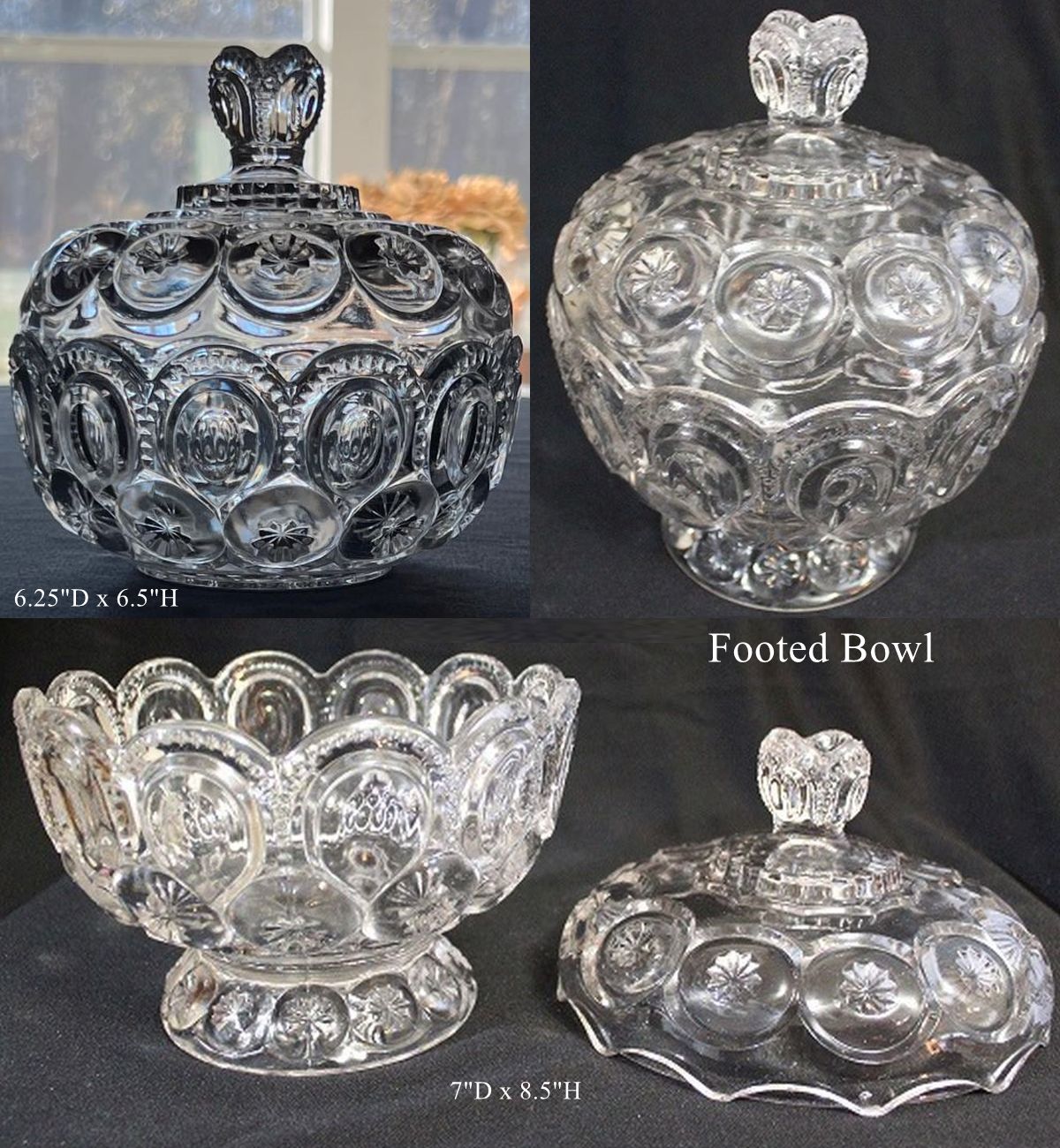 Contributor: David Zeidler - 7D low footed covered compote, 13D & 12D covered compote, spooner, 7D & 6D open compote