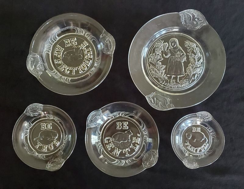 NOTE: Part of a series of plates: Be Affectionate, Be Gentle, Be Playful, Be True, Be Virtuous. Probably produced by Crystal Glass Company (Pittsburgh, Pa)