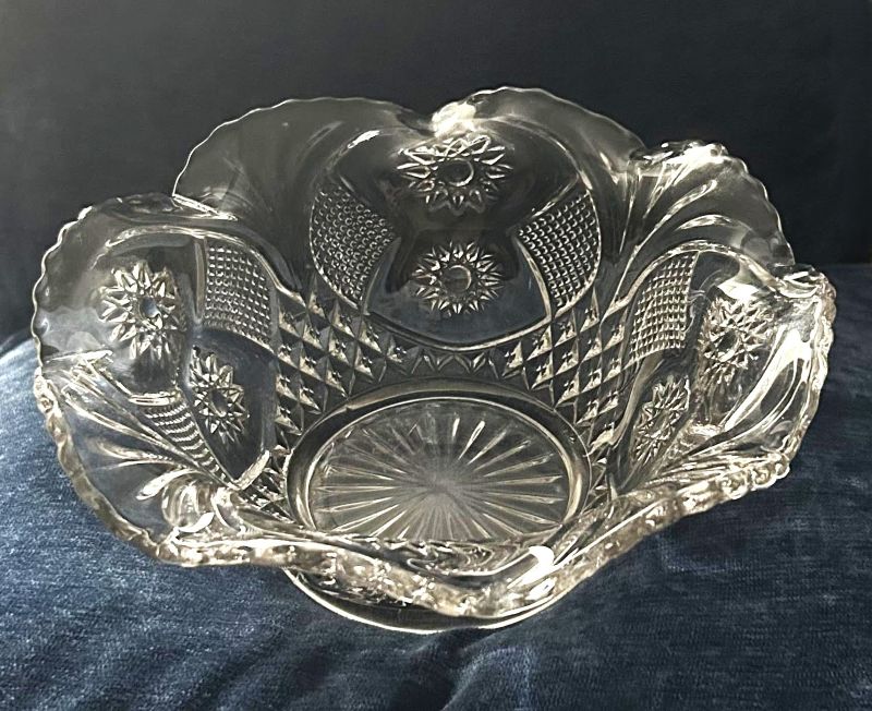 Contributor: Sue McAuley 8 1/4” diameter, 3” to 3 3/8” tall with a 4” diameter base