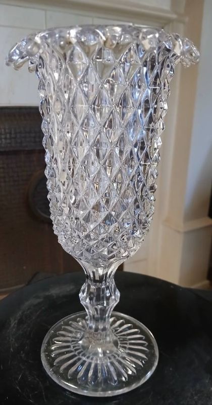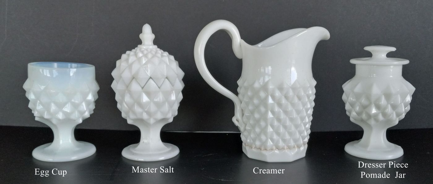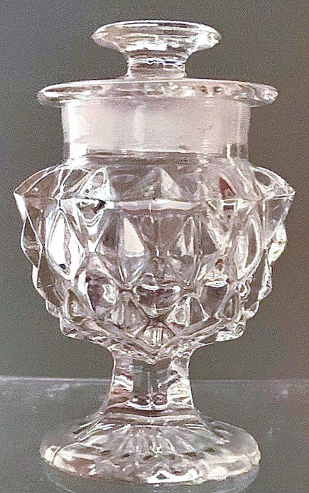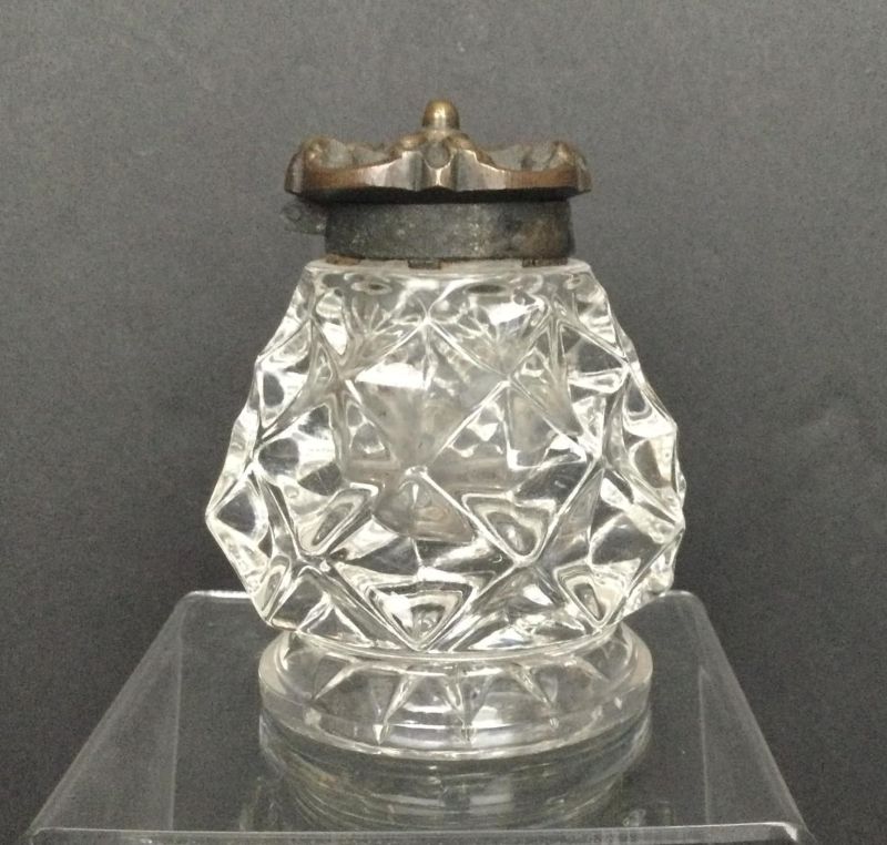 Contributor: Billandellen Morrison flint inkwell, cover and base pattern match a Sandwich Star example in the 1874 Curliss catalog.