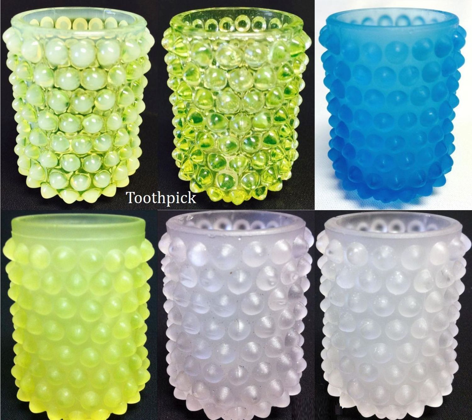 Contributor: Dave Peterson - examples of bottoms of toothpick/childrens tumbler, with and without prunts. Six-part mold.