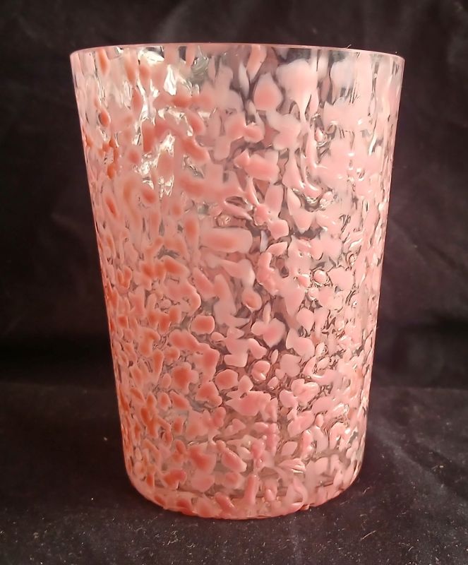 NOTE: Sid Lethbridge 2021: The term coraline (with an I) was being used in c1901 wholesale catalogues for this speckled/spattered glass made by picking up frit and partially melting it onto the glass surface. Jefferson called their version Pink Coraline which had a crystal body with opaque pink spatter.