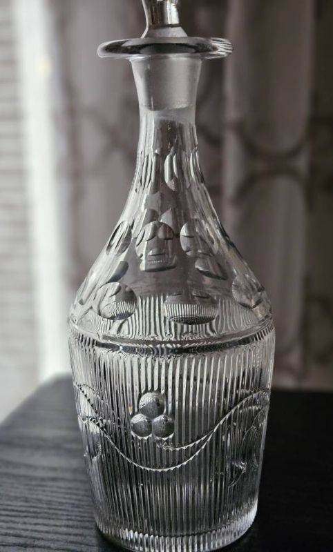 Contributor: Jessica Degarmo one liter size with cut ovals on neck. Would take a matching stopper