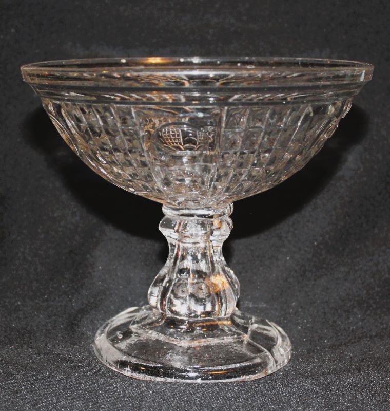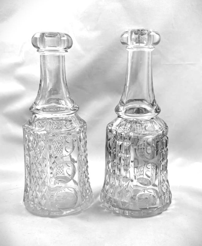 Contributor: Linda Yoder Side by side comparison: Left: Diamond Point & Thumbprint (listed as Thumbprint and Diamond Point Column); 9 1/8” tall, 4” D base Right: Waffle & Thumbprint (OMN Palace); 9 1/4” T, 4” D