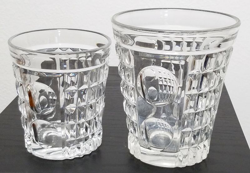 Contributor: Ursula Baumann - Small tumbler: 3.754H and 3.25D. Large tumbler: 4.25H and 4D