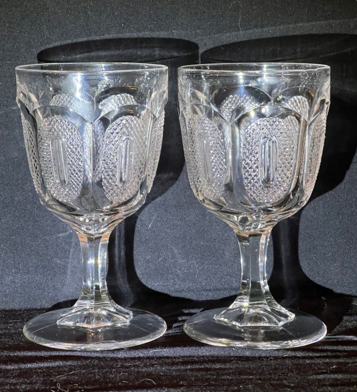 NOTE: Sid Lethbridge - Troy goblet differs in that it does not have the ribbing around the bottom of the bowl present on aka Buckle by Sandwich Glass Co.