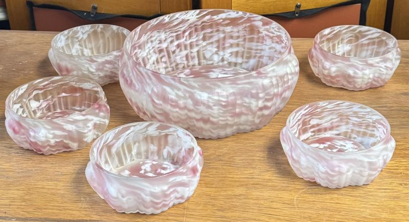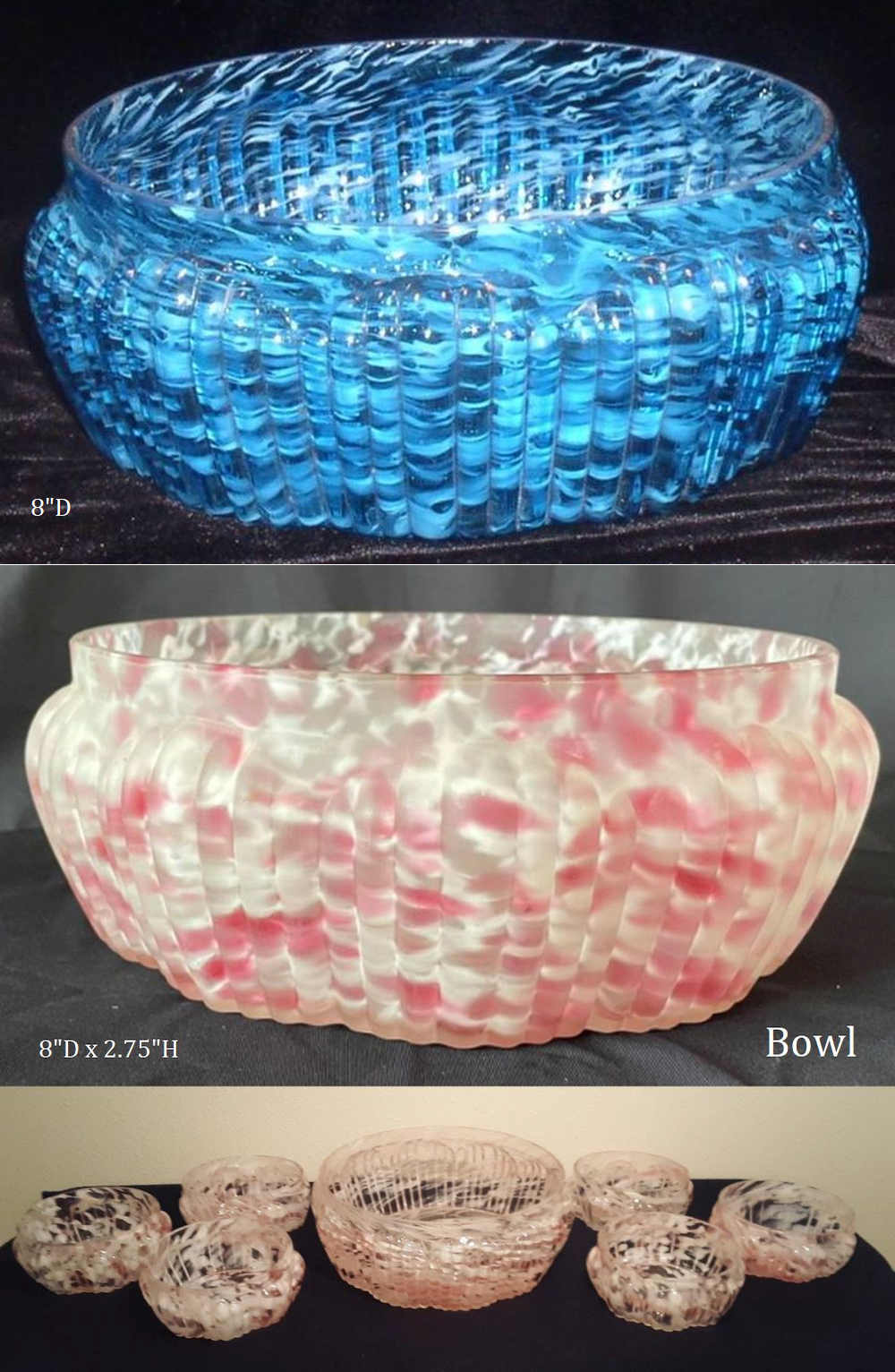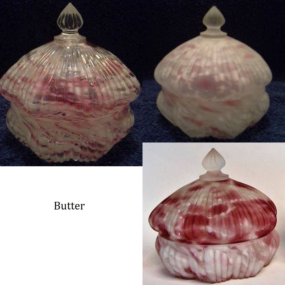 Contributor: Clark Adams pattern comparison shot in cranberry: Ribbed Opal Lattice on left; Ribbed Pillar on right