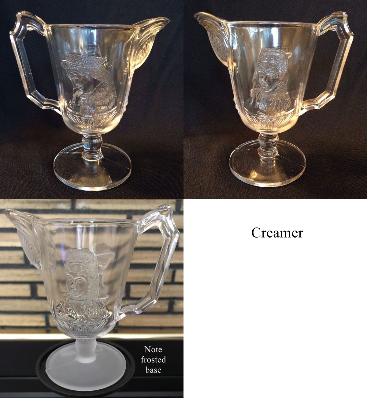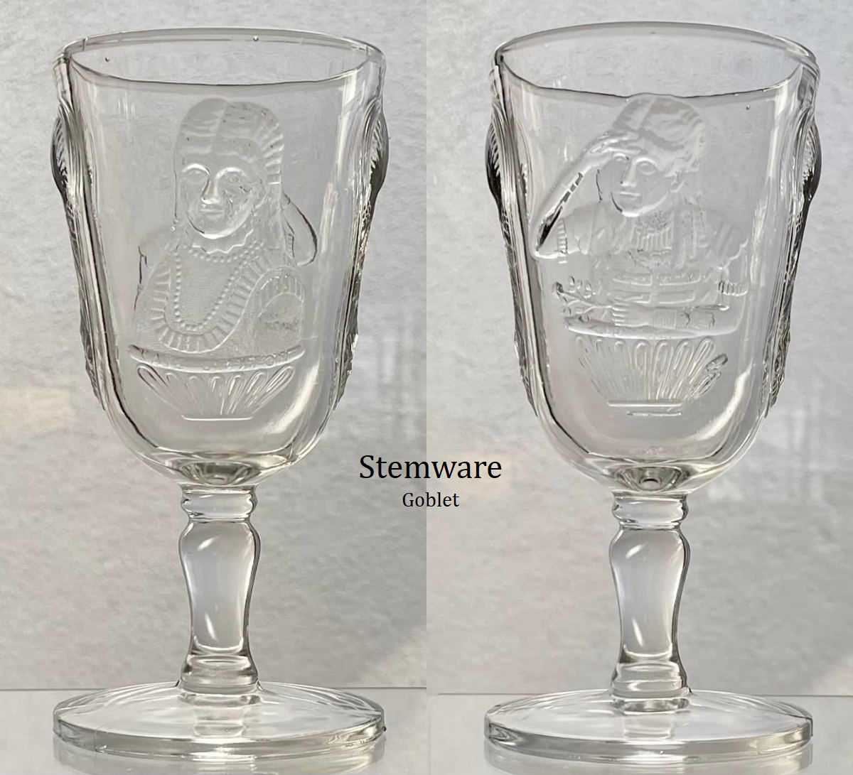 NOTE: Emily Kelley 2021: "...I have noted slight size variances in height and/or diameter for every piece except the bread plates, pickle dishes, square-cornered relish dishes, and the little Pinafore plate. So basically anything with a bowl, lid, or dome. The size differences (at least in my collection) are not huge, but are noticeable when similar pieces are set down side-by-side. A couple of the glass books suggest that the pattern was produced in “home” and “hotel” (or commercial) sizes, but I’ve never seen any evidence for that idea, and the size differences are pretty subtle, so I don’t see how that is the case. It would be wonderful to find catalog or advertising references for the Actress pattern, but I’ve never turned any up.