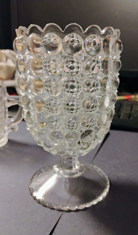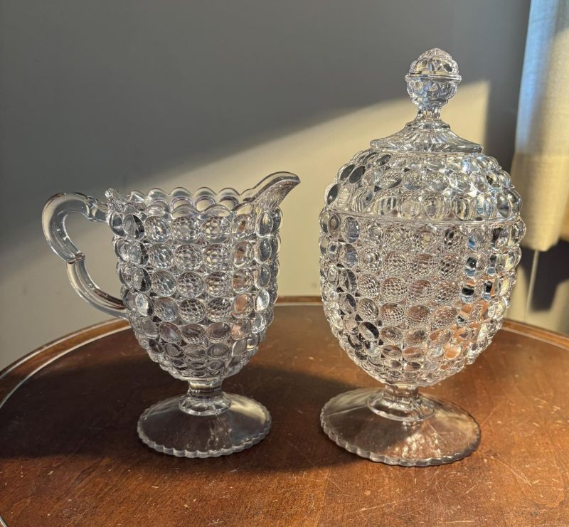 Contributor: Sandy Wilkin cream and sugar-- creamer- H-6”, D-3.25, sugar-H-9.25”, D-4.25”.