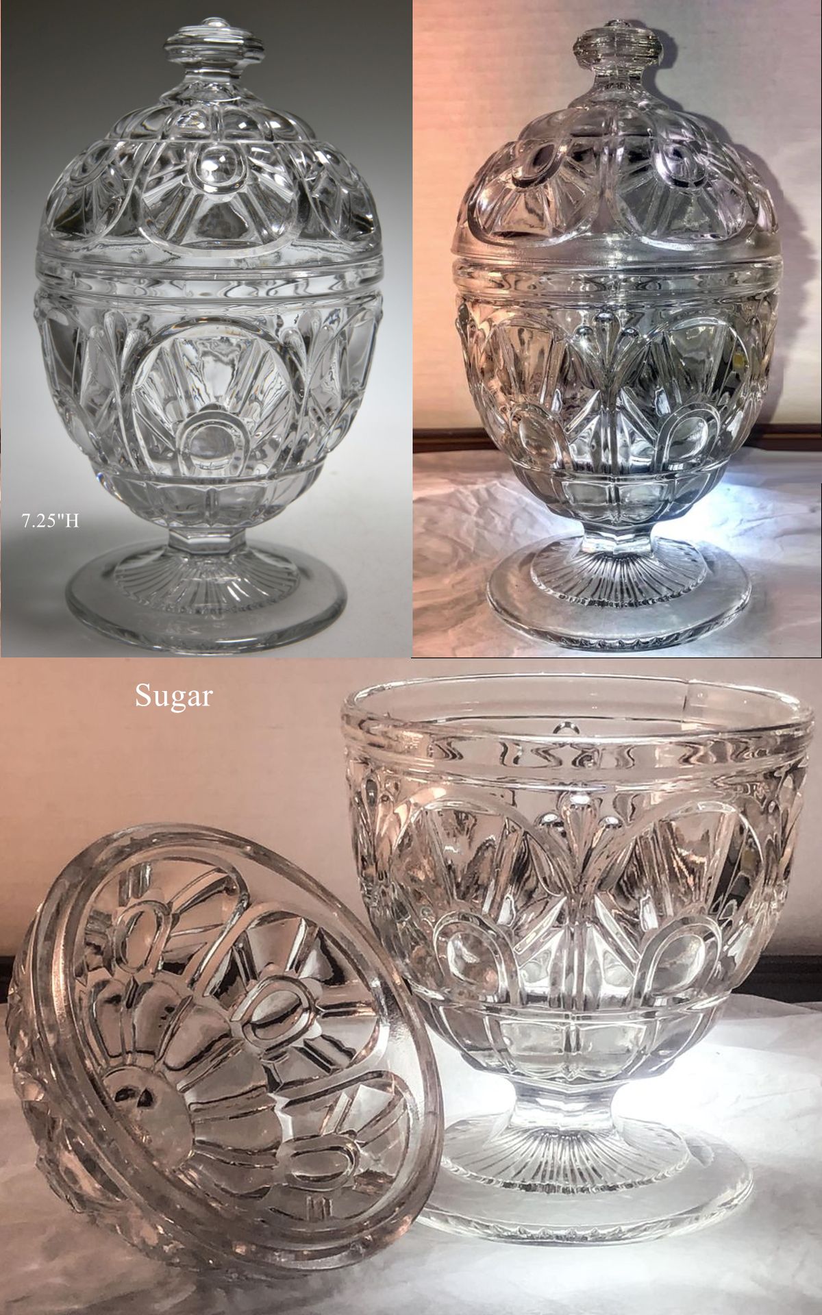 Contributor: Valerie Strunk It is flint glass. 3 1/4" diameter. 6 1/8" tall Note the rayed foot