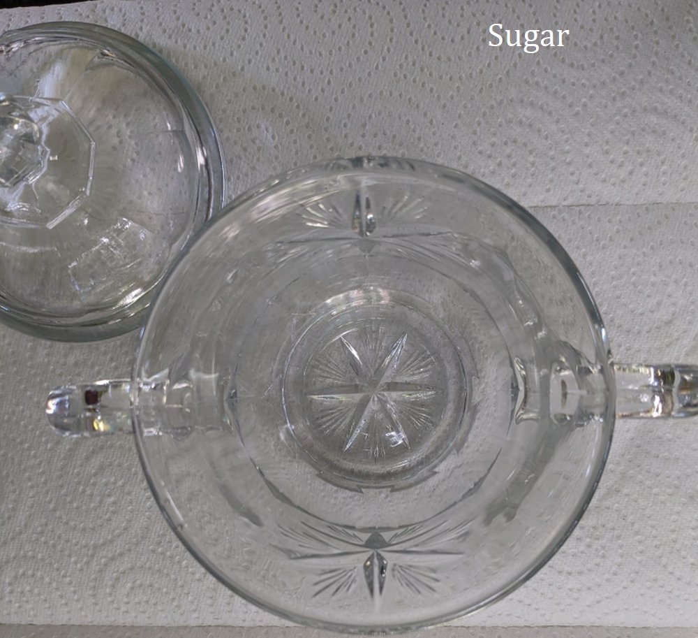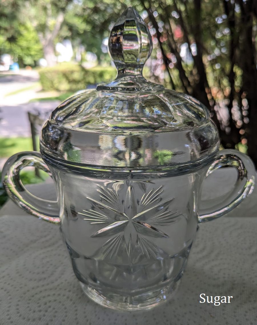 NOTE: Jeffrey McFadden - The lids are plain to this pattern but the bottoms of the pieces all have the rayed star. This pattern seems to be confused with Bethlehem star often.