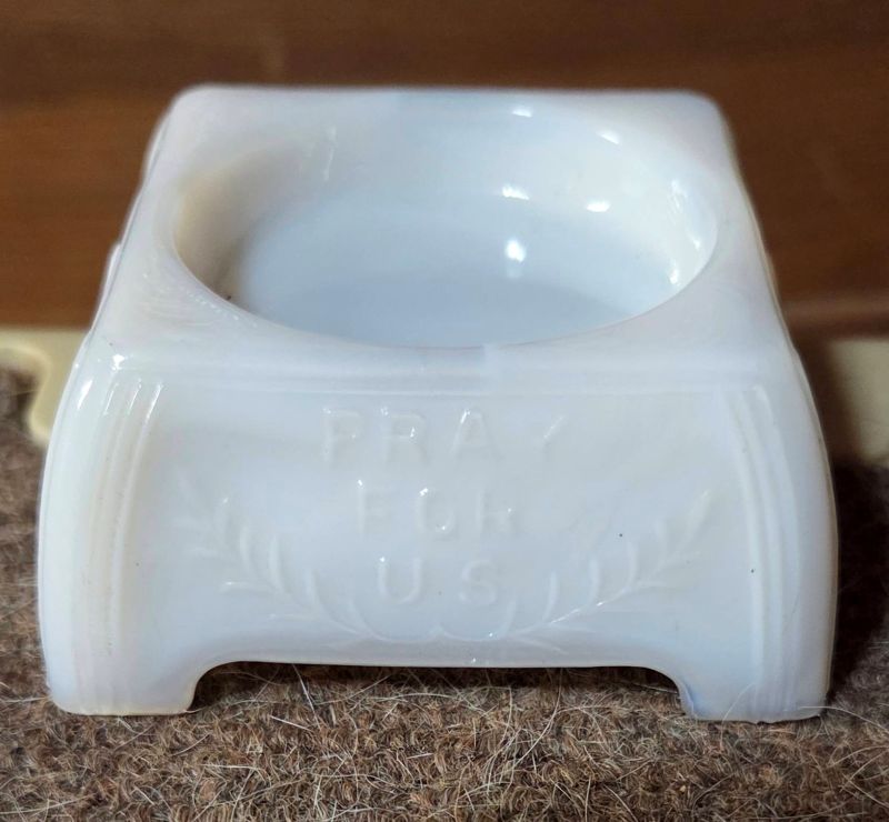 Contributor: Wendy Barrett-Stuart Akro Agate vigil light holder, 1940's- 3.5" square on the top and just slightly more on the bottom