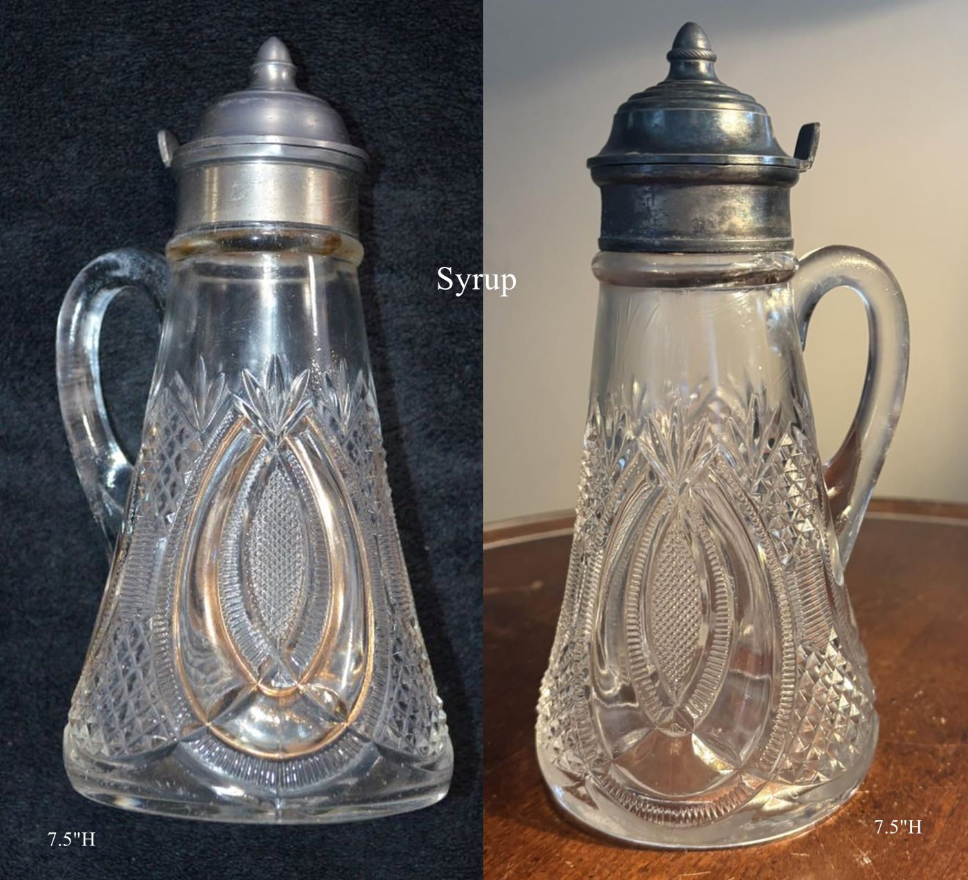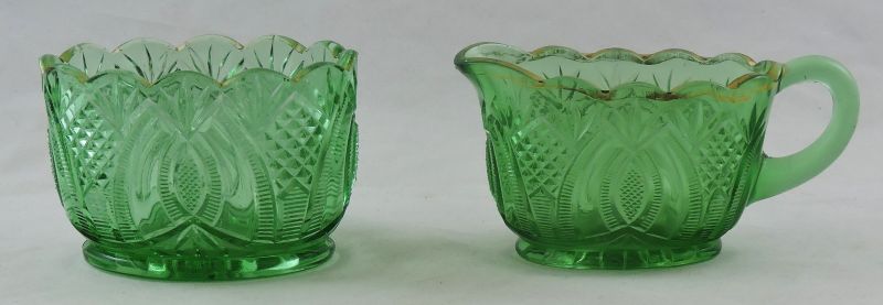 Contributor: Roger Haworth - individual size - Sugar 3.5L long,2.5W, and 2.5H. Creamer 2.25W, 2.25H 4.5L, including the handle.