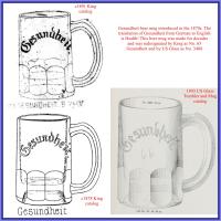• NOTE: Gesundheit beer mug introduced in the 1870s. The translation of Gesundheit from German to English is Health! This beer mug was made for decades and was redesignated by King as No. 65 Gesundheit and by US Glass as No. 3480