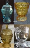 • NOTE: Mosser Glass has reproduced many items in this pattern. The goblets were not reproduced. Cake stands standards are different.
