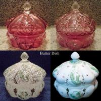 NOTE: various treatments such as bubble lattice and spatter. The outside diameter for the opening of a spooner is 2-5/8", the OD for the sugar is 2-7/8".