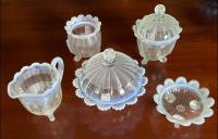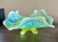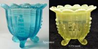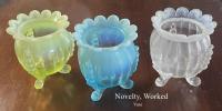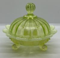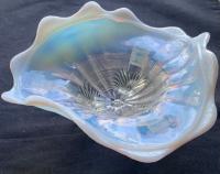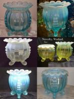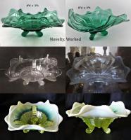 NOTE: Paul Kirk Jr. - Mosser reproduced the bowls in this pattern in opalescent glass (and also the covered puff, which is the small bowl with a lid). On the reproductions, the feet are opalescent. On the originals, they are not.