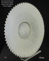 • NOTE: Jim McClure - Comes in plates, bowls from the same mold with pie crust or 8 ruffled edge, pitcher and tumblers. Most often found in carnival glass.