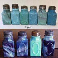 • NOTE: Sid Lethbridge: These are part of a family of shakers that can be found in some very wild colour variations. Maker unknown. These likely date to the early 1900s.