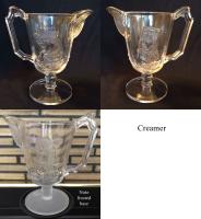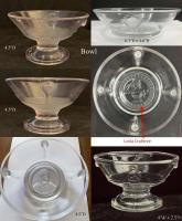 • NOTE: Emily Kelley 2021: "...I have noted slight size variances in height and/or diameter for every piece except the bread plates, pickle dishes, square-cornered relish dishes, and the little Pinafore plate. So basically anything with a bowl, lid, or dome. The size differences (at least in my collection) are not huge, but are noticeable when similar pieces are set down side-by-side. A couple of the glass books suggest that the pattern was produced in “home” and “hotel” (or commercial) sizes, but I’ve never seen any evidence for that idea, and the size differences are pretty subtle, so I don’t see how that is the case. It would be wonderful to find catalog or advertising references for the Actress pattern, but I’ve never turned any up.