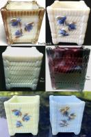 • NOTE: Sid Lethbridge - The maker is unknown but we can place it to c1887 based on its appearance in a Butler Bros. catalogue of that year. They can be found in opal (milk glass), ivory (custard), opaque blue and purple slag and other colours. The ad suggests that the winged insects are flies not bees. Possible makers include Challinor, Taylor; Atterbury; or another unknown maker who was also making slag glass in the mid 1880s.