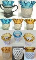 • NOTE: Sid Lethbridge 2023: ruffled rims are not stained. It is amber[or blue] glass that was applied during the production.
