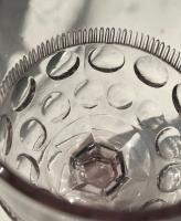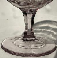 • NOTE: Sid Lethbridge 2024: reference Unitt's vol 2, pp10-11. Unitts describe this goblets as "Lightweight flint with almost no ring"; Jeannie Symington's findings align with that. This piece has a purplish color and gives no indication that it's flint, yet reacts to UV weakly as flint glass does.
