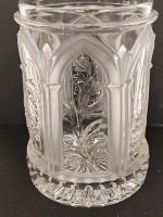 • NOTE: 2025: three Gothic window arches having either a grape cluster, a flower plant, or a hanging plant basket. Widow arches frosted. 3.125" Diameter, 4.5" height