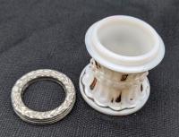 • NOTE: Mitchell Stewart 2025 - Per Richard Ryan: "... was called Beaded Belt by Heacock and by Bredehoft. In the 46 years since Heacock first showed it we still do not have a manufacturer identified. Thanks to Julia Maupin, she has shown it in a Butlers Bros. ad from 1906 so now we at least have a good date. It was called “Decorated Opal Toothpick or Match Holder.” I believe this very likely will be found in crystal someday. The metal lid screws onto the glass base."
