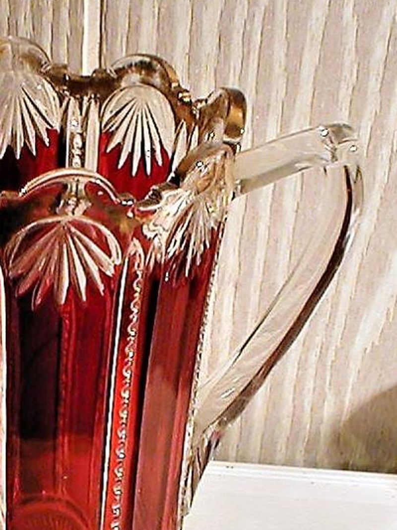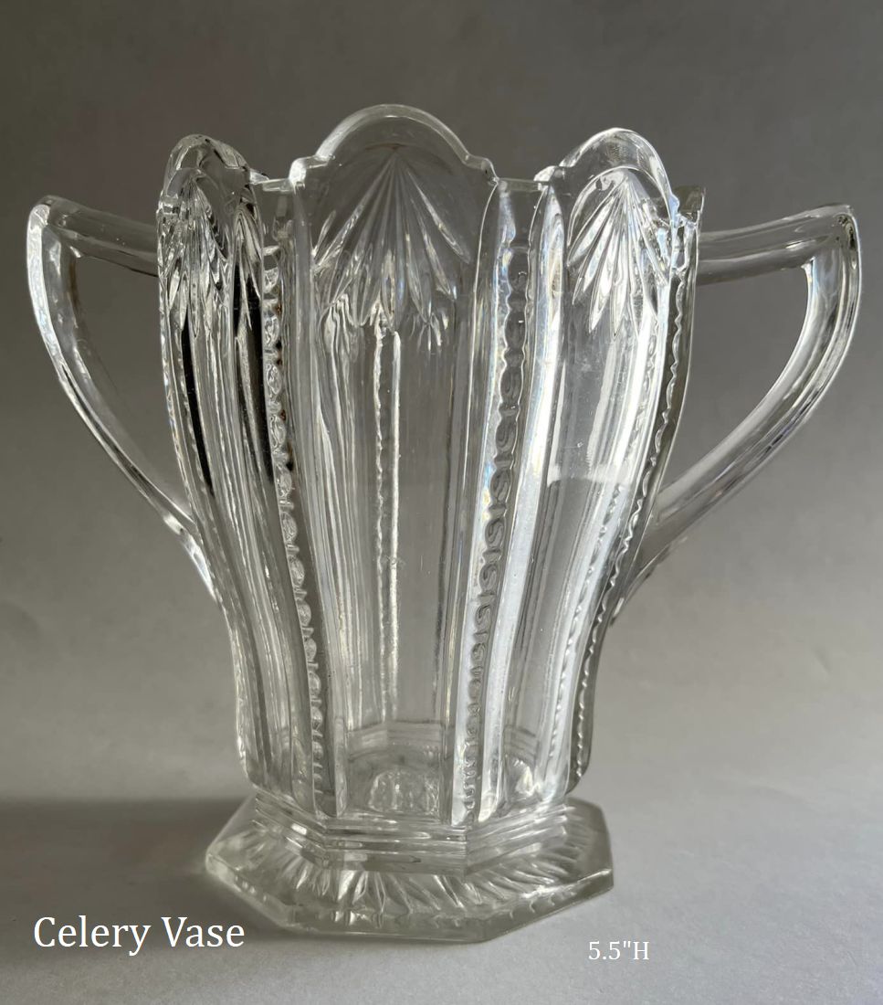 "The 'Thistle' tableware of the Cambridge Glass Co. is a light new pattern. It is a complete table line, as is the No. 2768 or 'Fan' Colonial line. The latter possesses an imitation cut star pattern and a beaded mitre effect between the side panels..."